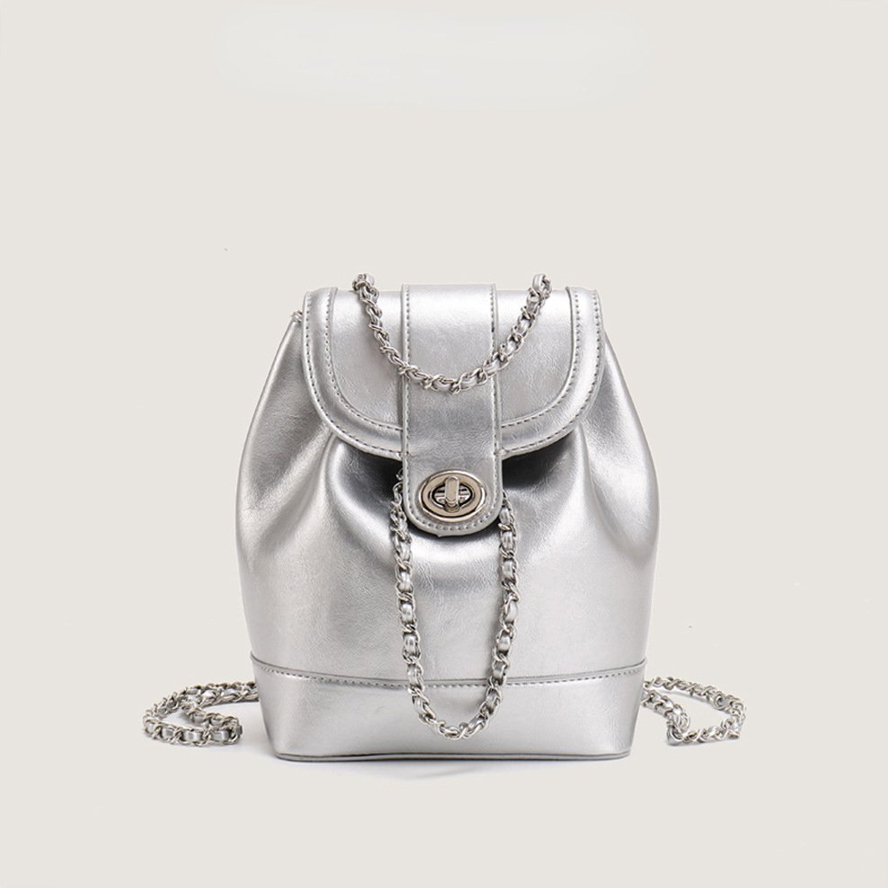 オイルワックス牛革風チェーンショルダーバッグ