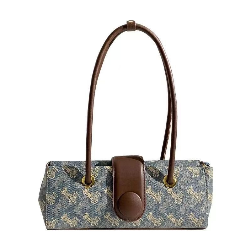 レトロ風プリントショルダーバッグ