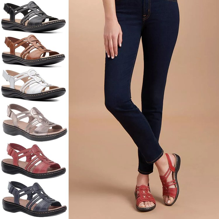 【外反母趾対策サンダル】柔らかい、ラウンドトゥ、牛革、 ウェッジソール、履き心地が快適