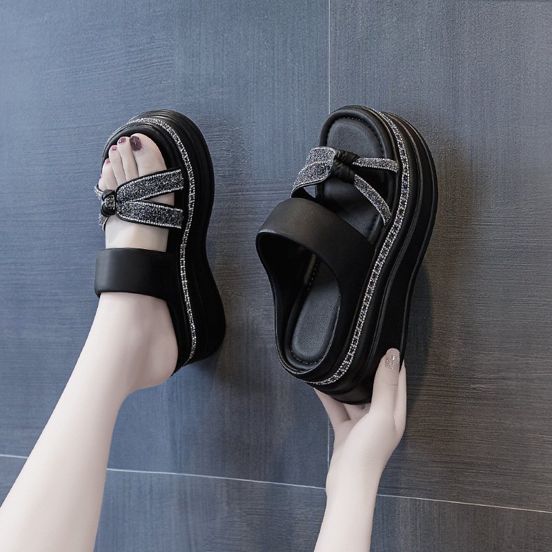 ラインストーン付きウエッジソール厚底サンダル