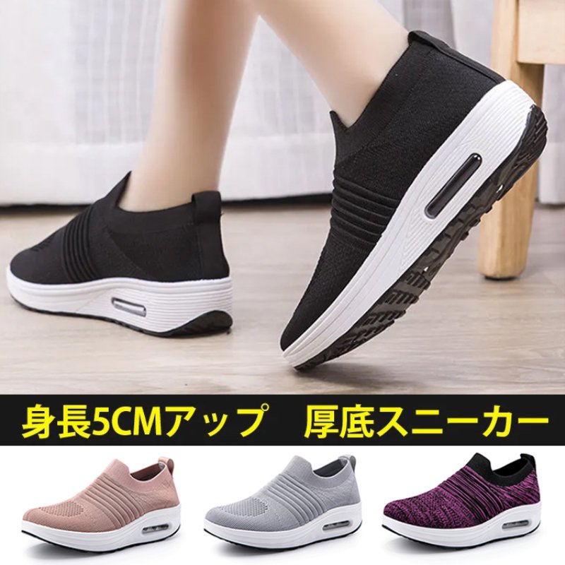 着脱簡単身長アップ厚底ニットスニーカーレディース