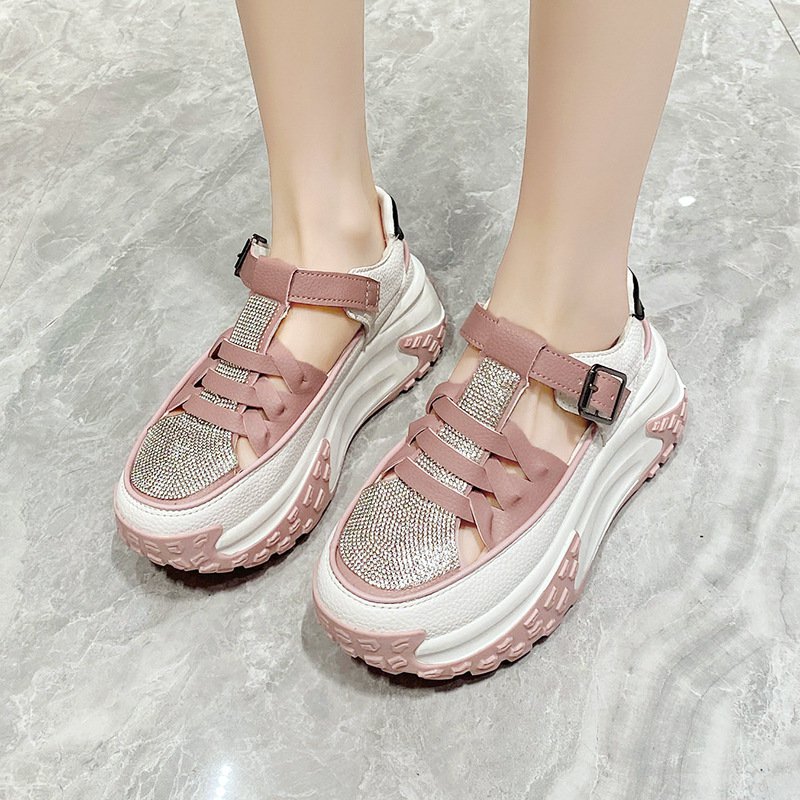 キラキラ牛革厚底透かし彫りサンダル