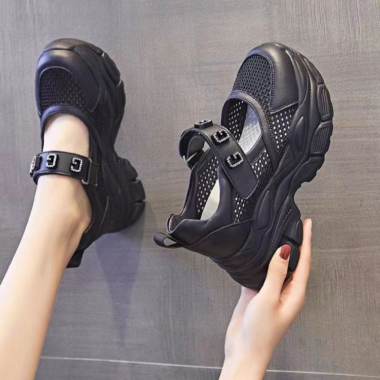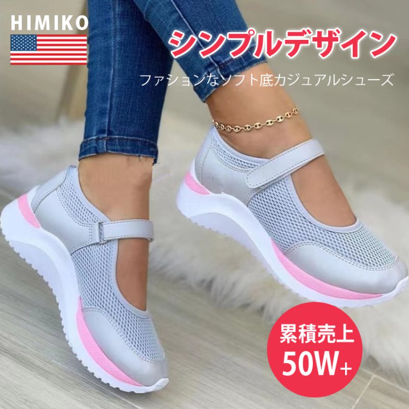 厚底で通気性を持つメッシュの婦人靴