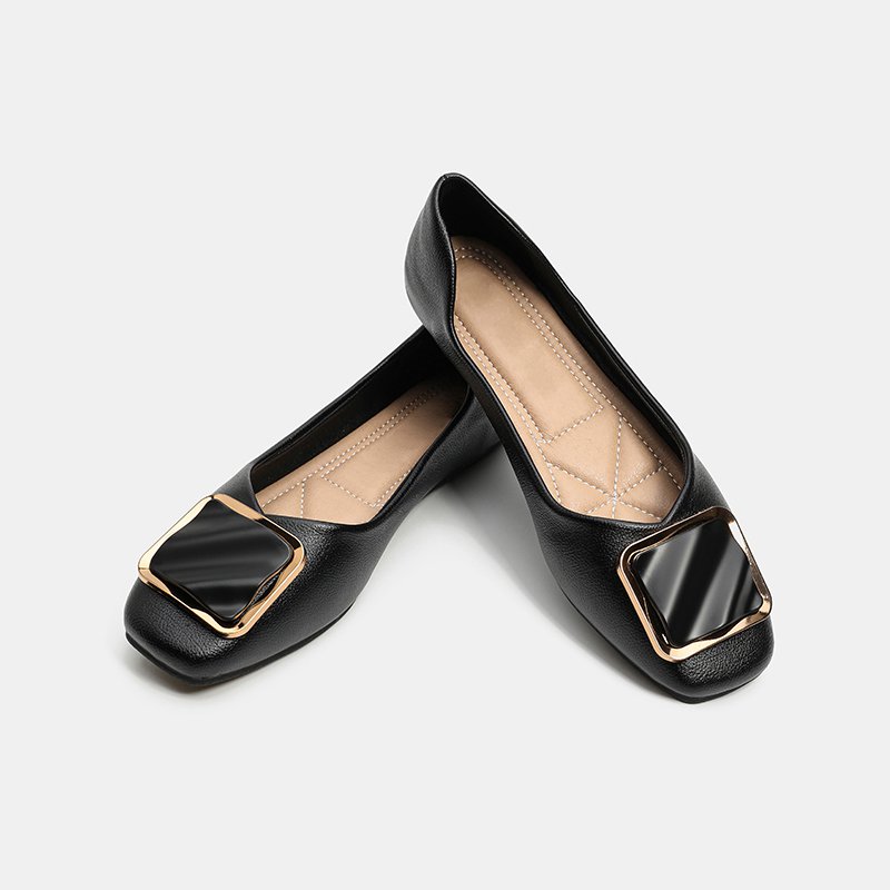 スクエアトゥメタルバックルパンプス