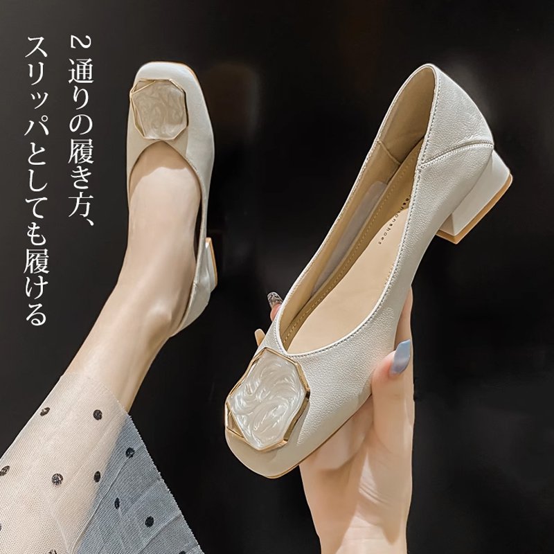 スクエアトゥローヒールパンプス